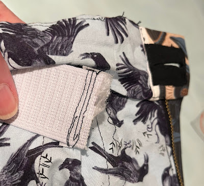 I am trying to not stitch the elastic through the waistband layers to secure it, but I end up doing that very thing at the end of the process because I just SCREW UP. I don't think it looks very finished, but I get impatient, I want to have the thing done now so I can wear them tomorrow (or some other ridiculous self inflicted deadline)....